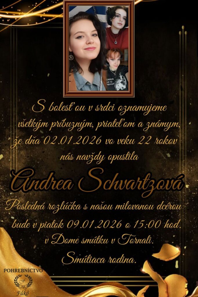 Smútočné oznámenie, Andrea Schwartzová (†22)