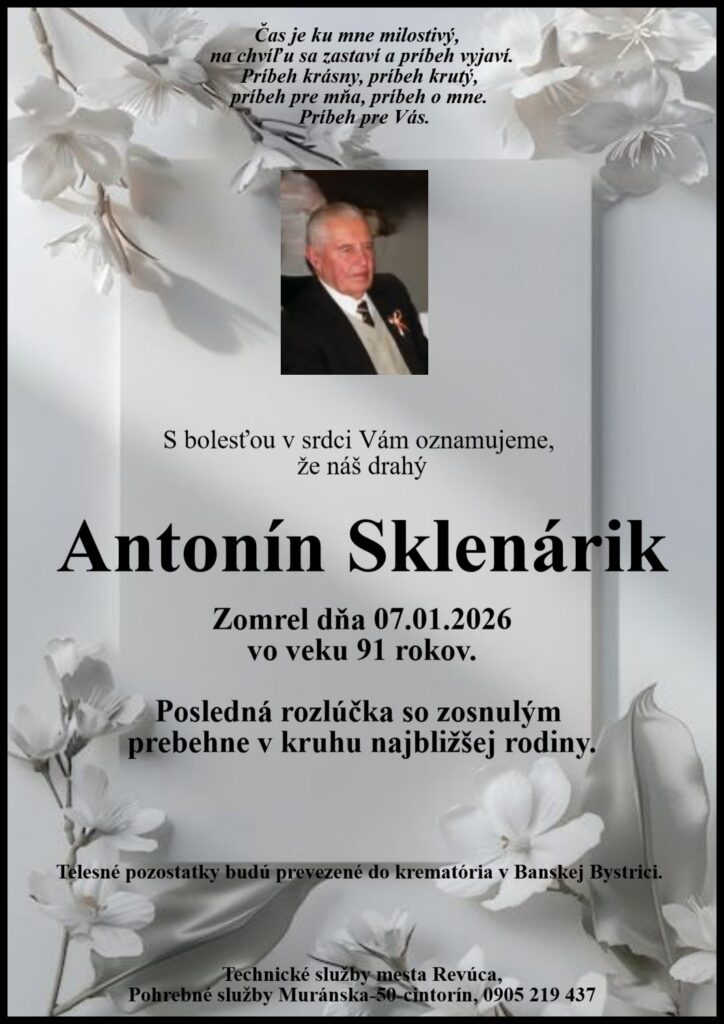 Smútočné oznámenie, Antonín Sklenárik (†91)