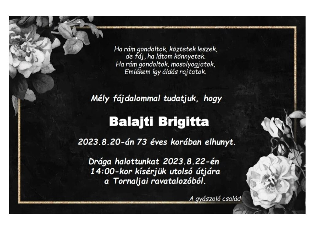 Smútočné oznámenie - Balajti Brigitta (†73)