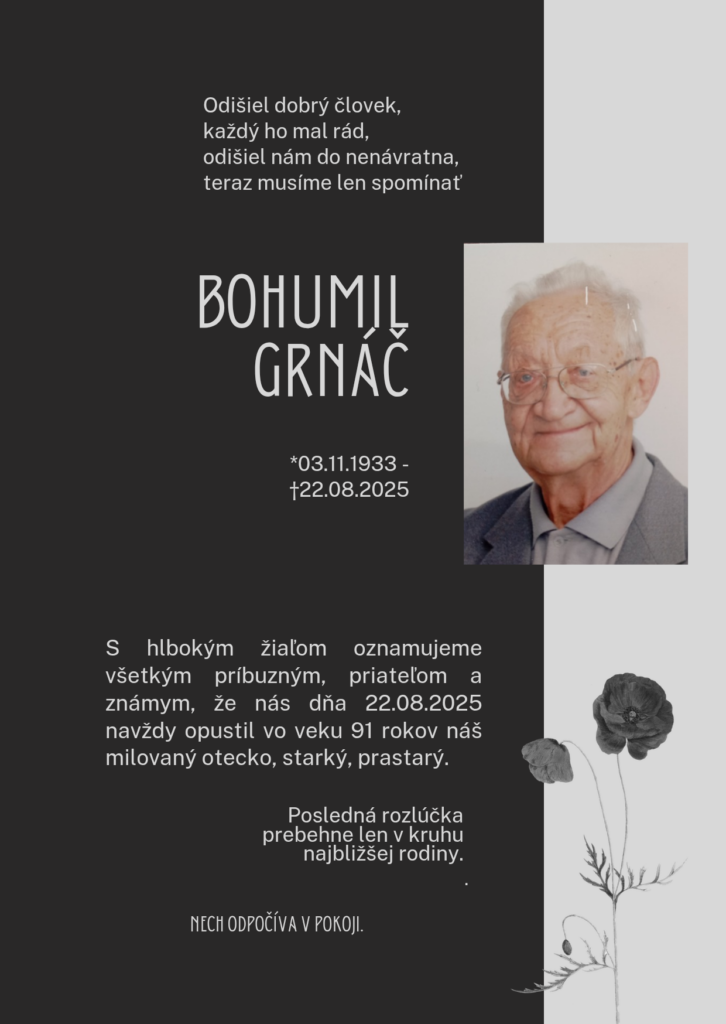 Smútočné oznámenie, Bohumil Grnáč (†91)