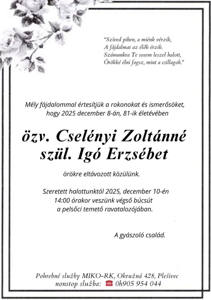 Smútočné oznámenie, Igó Erzsébet (†81)