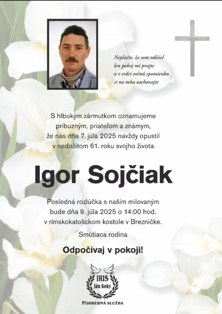 Smútočné oznámenie, Igor Sojčiak (†61)