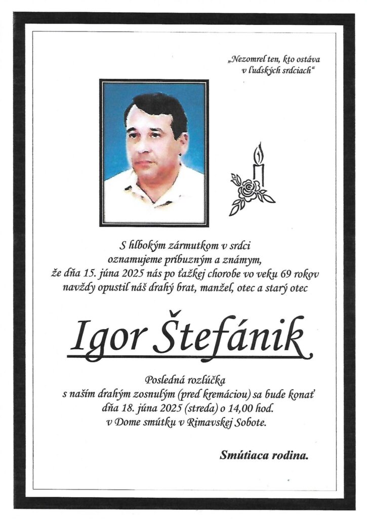Smútočné oznámenie, Igor Štefánik (†69)