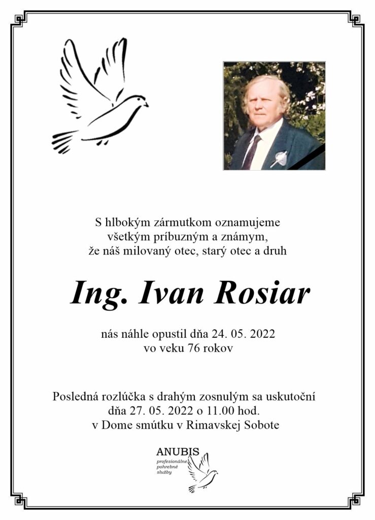 Smútočné oznámenie – Ivan Rosiar (†76)