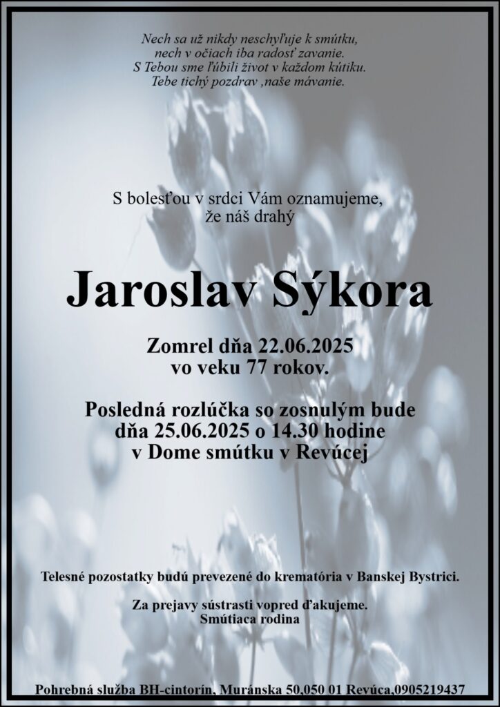 Smútočné oznámenie, Jaroslav Sýkora (†77)
