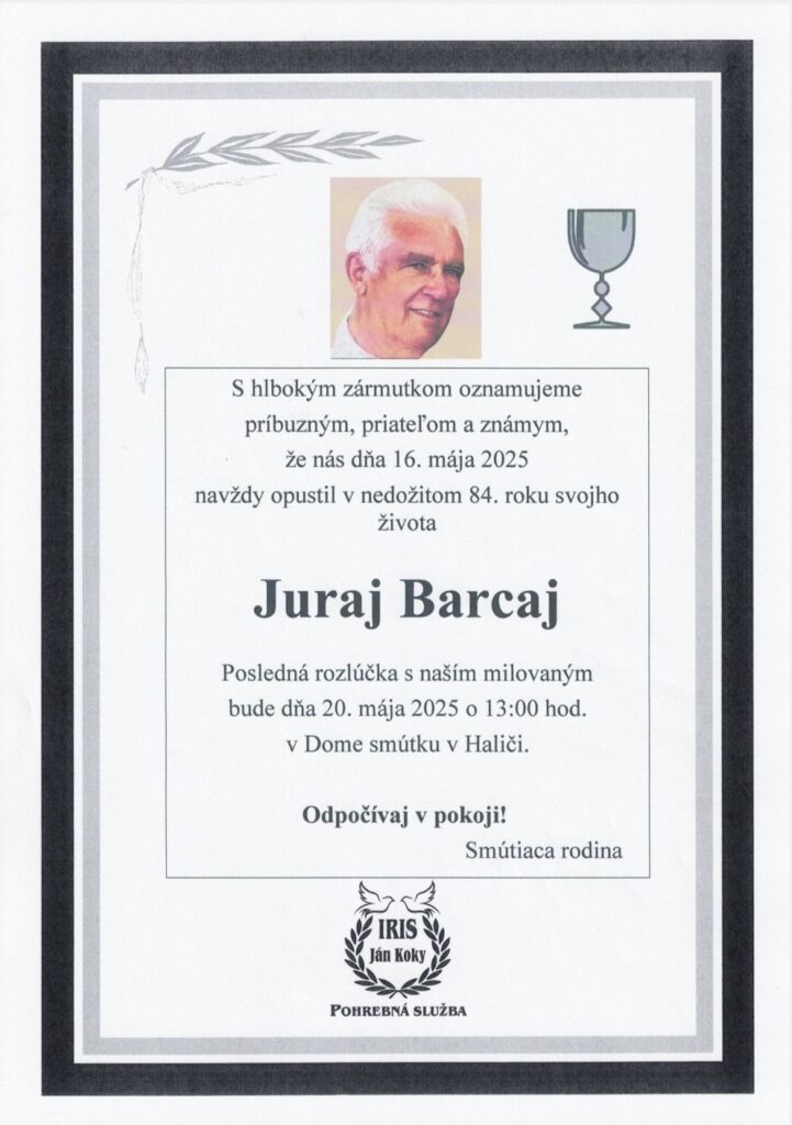 Smútočné oznámenie, Juraj Barcaj (†84)