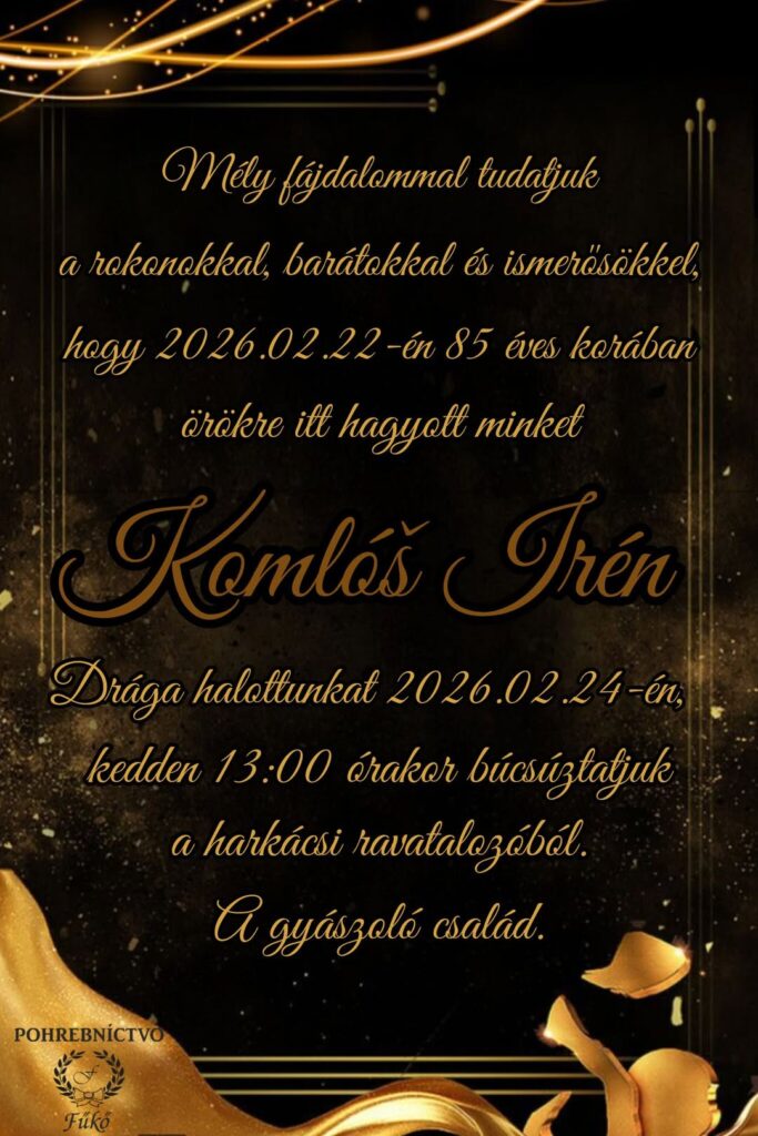 Smútočné oznámenie, Kamláš Irén (†85)