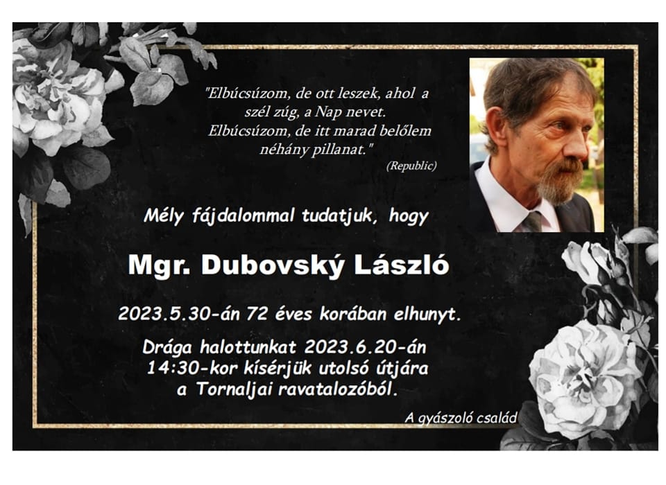 Smútočné oznámenie - László Dubovský (†72)
