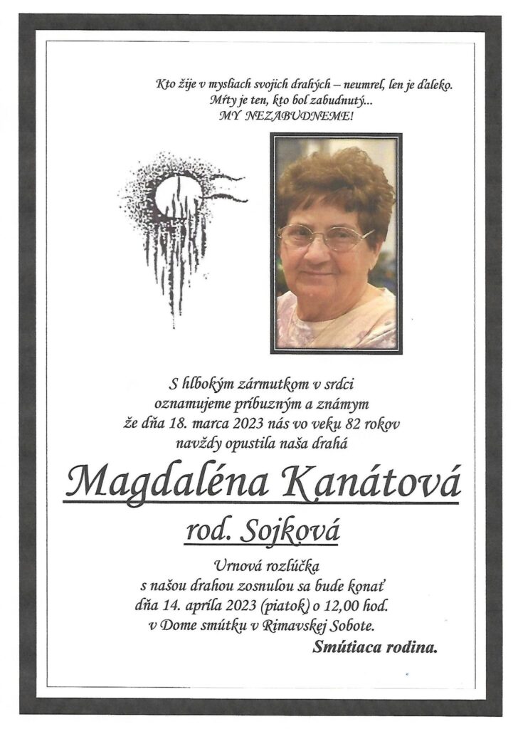 Smútočné oznámenie - Magdaléna Kanátová (†82)