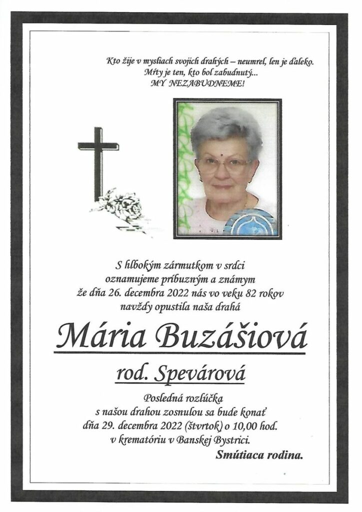 Smútočné oznámenie - Mária Buzášiová (†82)