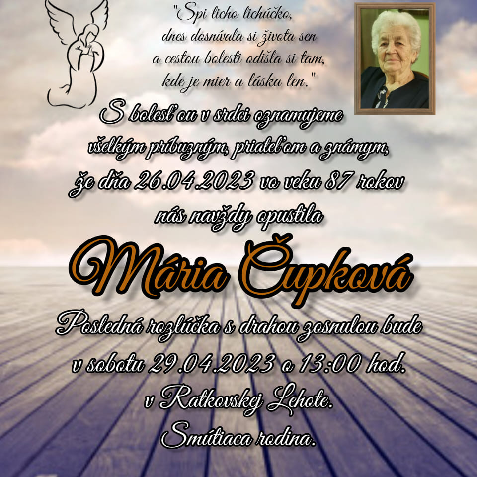 Smútočné oznámenie - Mária Čupková (†87)