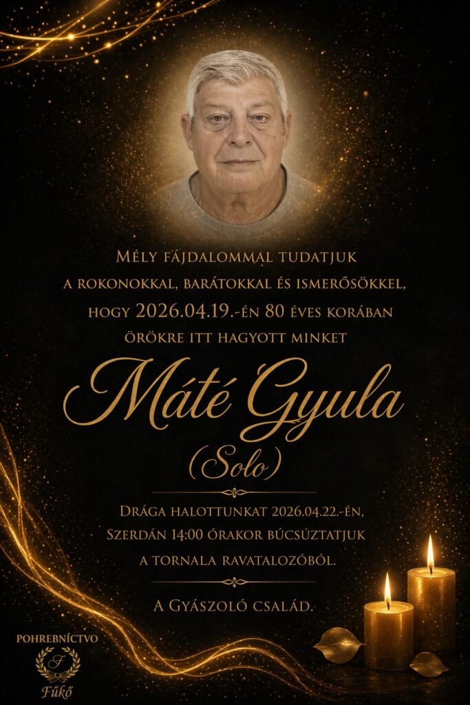 Smútočné oznámenie, Máté Gyula (Solo) (†80)