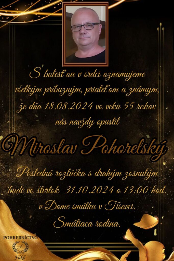 Smútočné oznámenie, Miroslav Pohorelský († 55)
