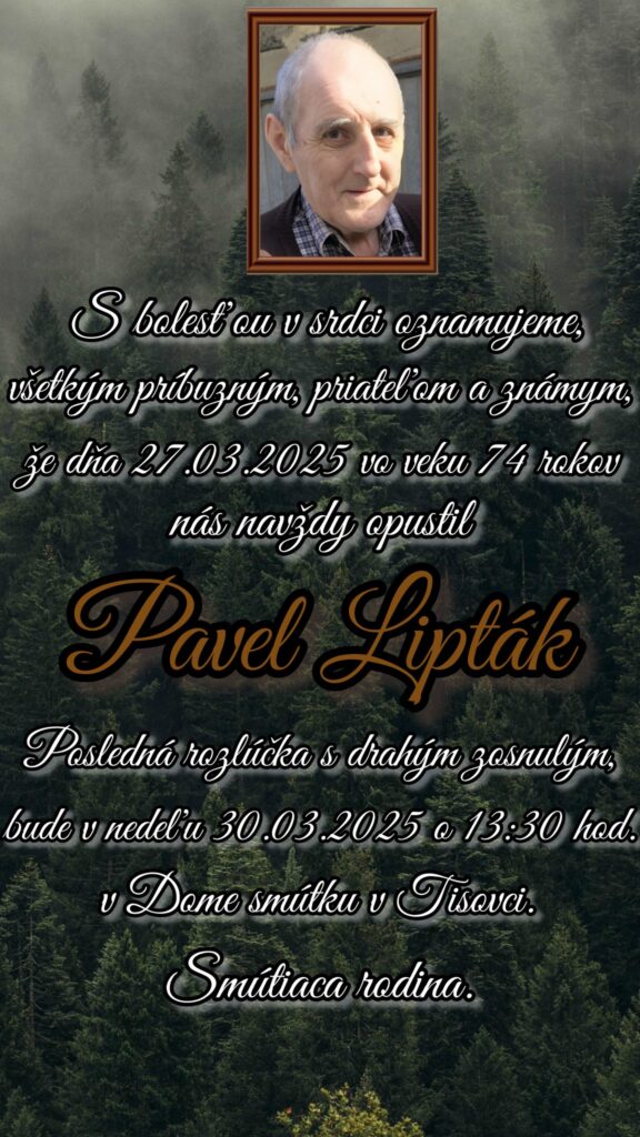 Smútočné oznámenie, Pavel Lipták (†74)