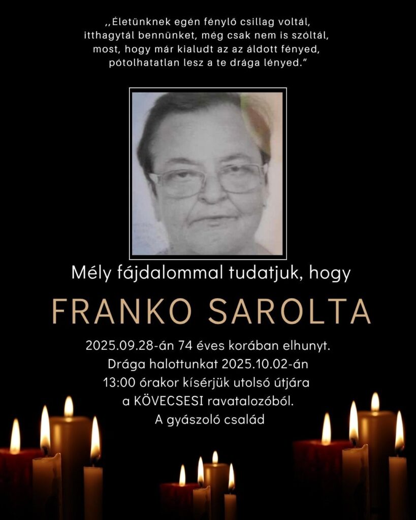 Smútočné oznámenie, Sarolta Franko (†74)
