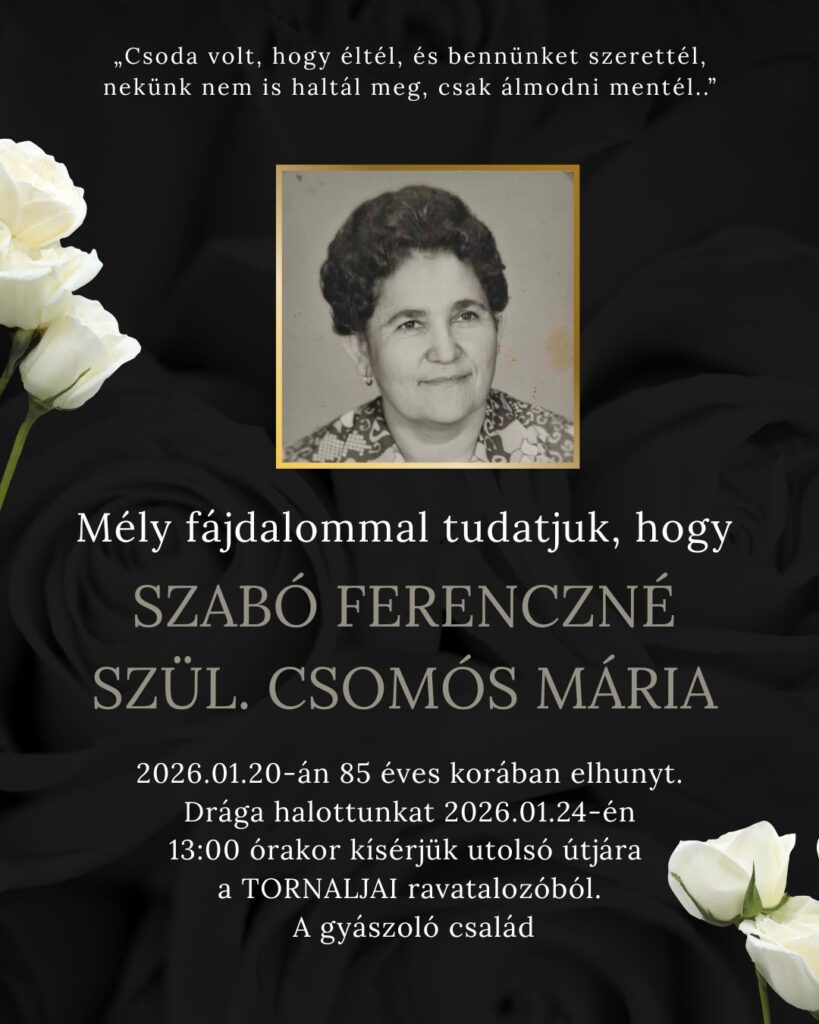 Smútočné oznámenie, Szabó Ferenczné, szül. Csomós Mária (†85)