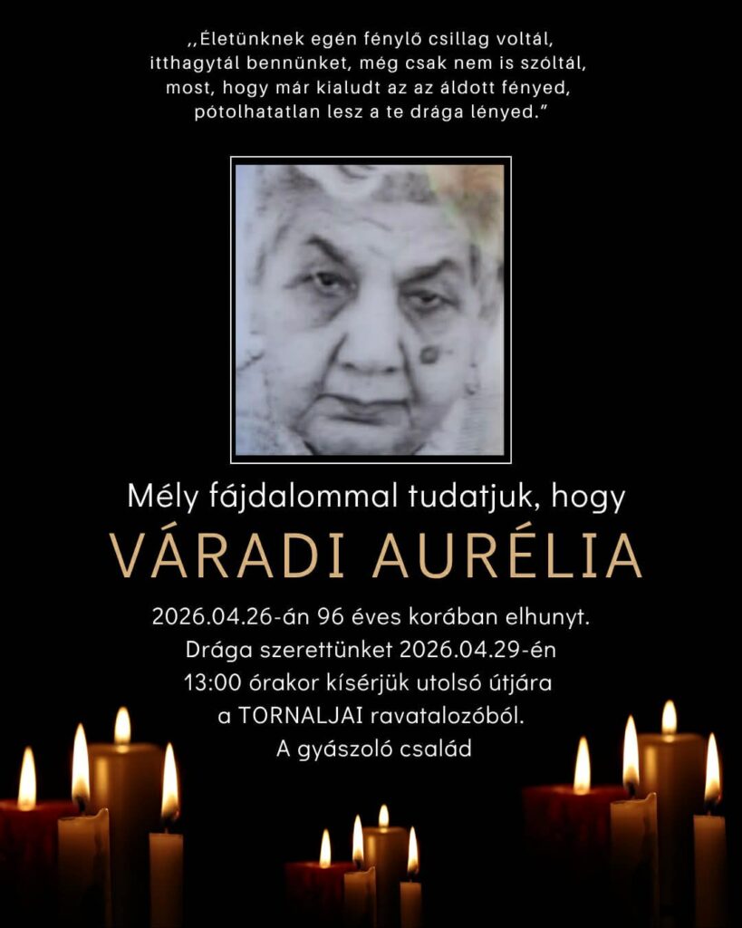 Smútočné oznámenie, Váradi Aurélia (†96)