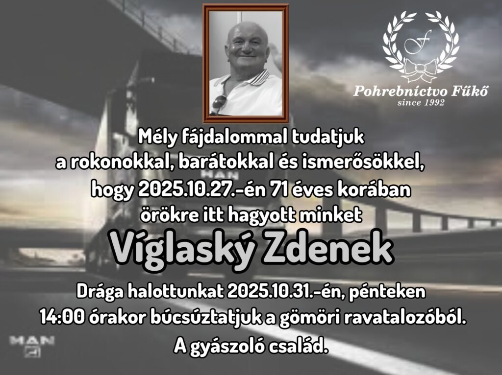Smútočné oznámenie, Víglaský Zdenek  (†71)