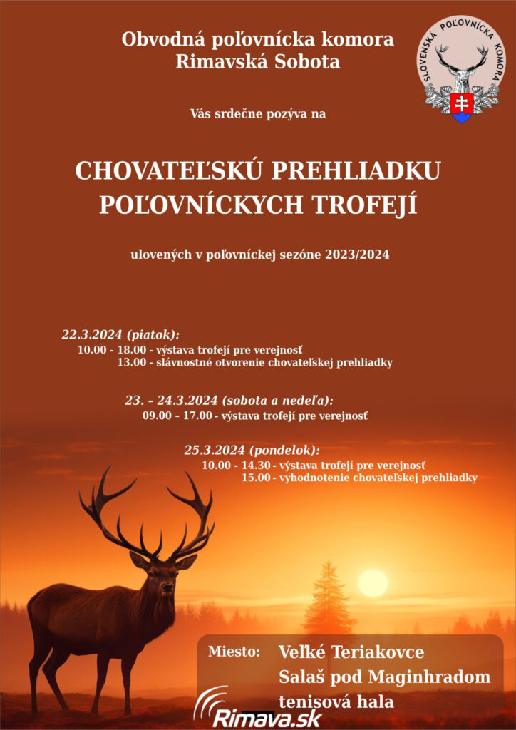 Chovateľská prehliadka poľovníckych trofejí ulovených v poľovníckej sezóne 2023/2024 - výstava.
