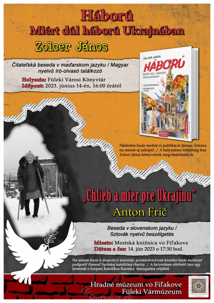 14. júna 2023 sa v Mestskej knižnici vo Fiľakove uskutoční dvojitá beseda venovaná konfliktu na Ukrajine. Od 17:30 hodiny si účastníci budú môcť vypočuť v slovenskom jazyku osobné zážitky a skúsenosti humanitárneho pracovníka, fotografa a cestovateľa Antona (Tonyho) Friča, zdokumentované fotografiami, čomu bude od 16:00 hodiny predchádzať predstavenie novej knihy Jánosa Zolcera v maďarskom jazyku.