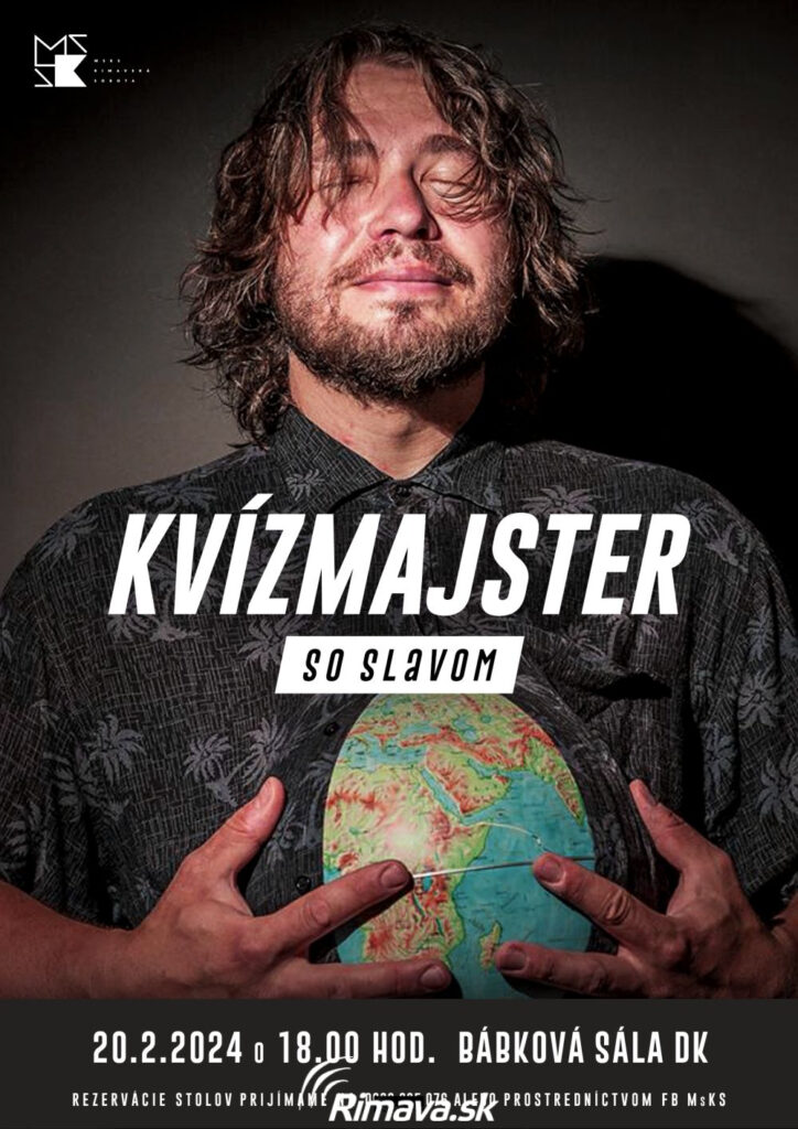 Kvízmajster bude v utorok, 20. 2. 2024 o 18.00 hod. v našom milom priestore bábkovej sály, vchod cez DeKáČ. Budeme sa tam cítiť ako vo svojej obývačke, plus skvelý kolektív Dekáča nám načapuje pivko, prinesie vínko, čajík, čo len budeme chcieť. Ak chceš mať zaručene miesto, ohlás svoj tím na čísle 0908 805076 alebo na FB MsKS.