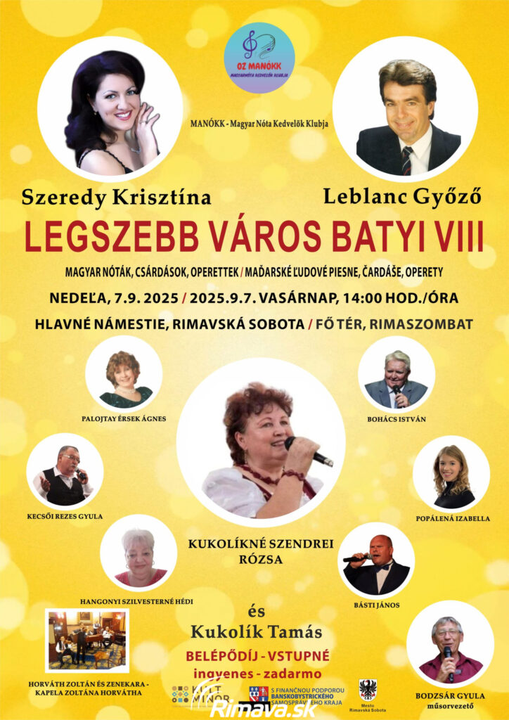 27.okt.2025 - Calendar Kedy: 7. september 2025 @ 14:00 – 17:00 2025-09-07T14:00:00+02:00 2025-09-07T17:00:00+02:00 Kde: Hlavné námestie, Rimavská Sobota/ Fő Tér, Rimaszombat Vstupné / Štartovné: ZADARMO Kontakt: MANÓKK - Magyar nóta kedvelök klubja +421918617076 Email Koncert Top akcie Prvý dojem si o cudzom človeku vytvárame už v priebehu niekoľkých sekúnd. A veľakrát majú na výsledok tejto „analýzy“ vplyv […] Ďalej...