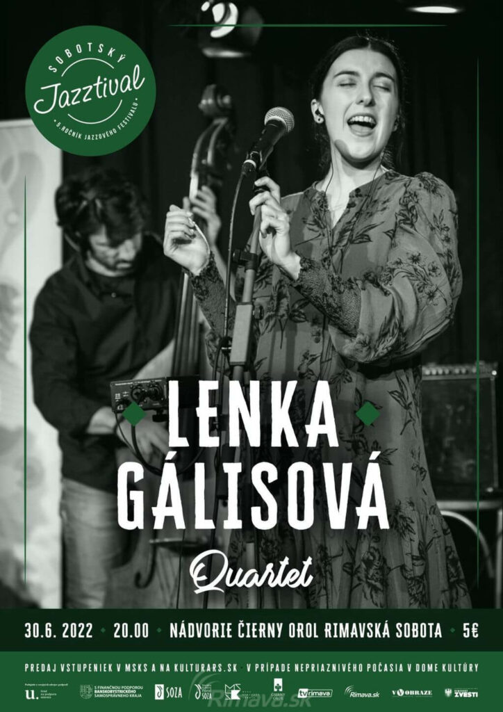 Prvým koncertom v rámci 5. ročníka Sobotského Jazztivalu bude v piatok, 30. 6. o 20.00 hod. koncert mladej hudobnej formácie Lenka Gálisová Quartet, ktorá od svojho vzniku v roku 2020 žne jeden úspech za druhým. Na prehliadke Nové tváre slovenského jazzu vlani získali cenu Objav roka. Tešíme sa na zaručene skvelý hudobný zážitok znásobený príjemnou atmosférou Nádvoria Čierny orol. Vstupné: 5 €, predaj vstupeniek v TIC, na www.kulturars.sk a priamo na mieste. Projekt z verejných zdrojov podporili Fond na podporu umenia, Banskobystrický samosprávny kraj, SOZA a Sociálny a kultúrny fond SOZA.