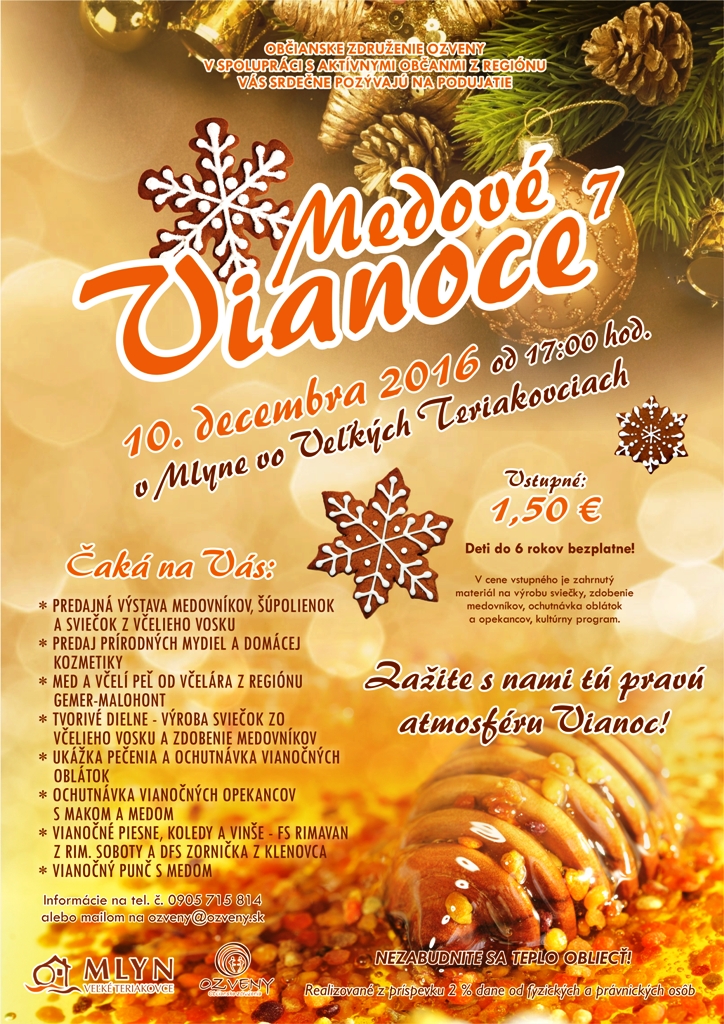Vianoce v teriakovskom mlyne budú už po 7. krát medové.