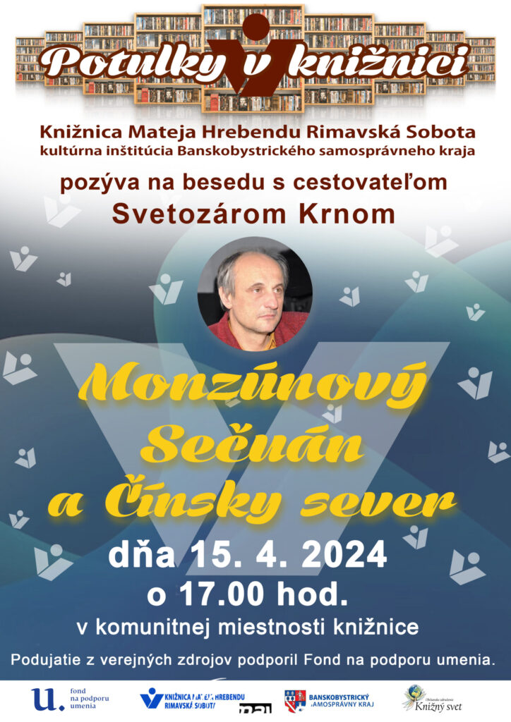 Témou besedy budú cestopisné zážitky, postrehy a úvahy, ktoré cestovateľ získal na svojich cestách po Sečuáne a severnej Číne. Beseda bude obohatená o autorove poznatky z dejín Číny, ale aj o vecné poznatky o čínskych náboženských, filozofických a politických smeroch, historických vlnách čínskej civilizácie i o zaujímavostiach z etnickej a kultúrnej pestrosti.