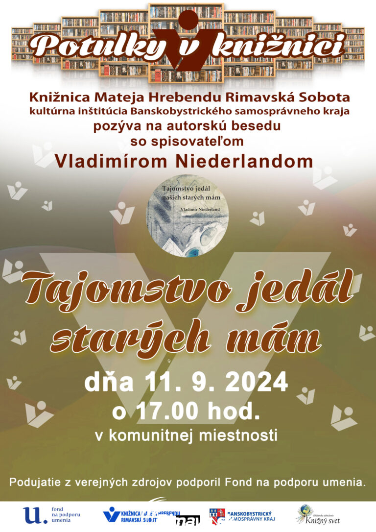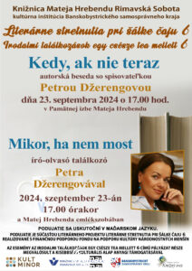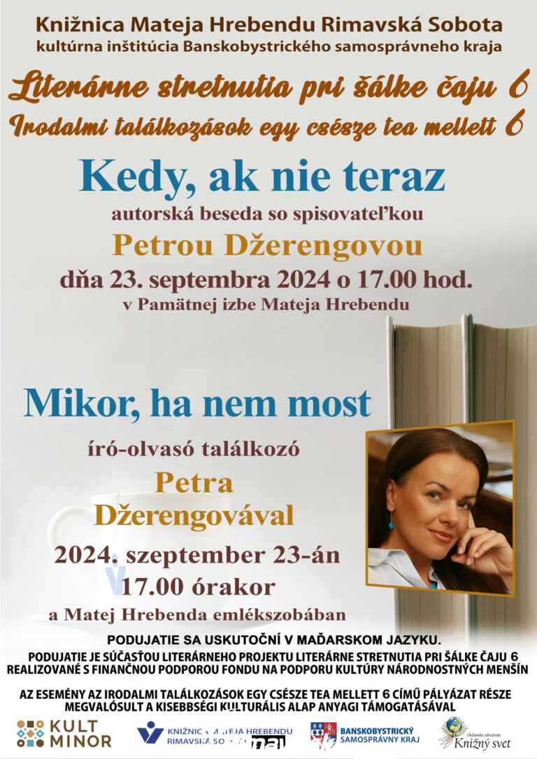 POPIS UDALOSTI, POZNÁMKY Autorská beseda s Petrou Džerengovou - populárnou autorkou ženských románov a noviel. Inšpiráciu pre svoje knihy čerpá zo svojho života, z okolia a z prostredia, ktoré najlepšie pozná. Beseda bude prebiehať v[...]