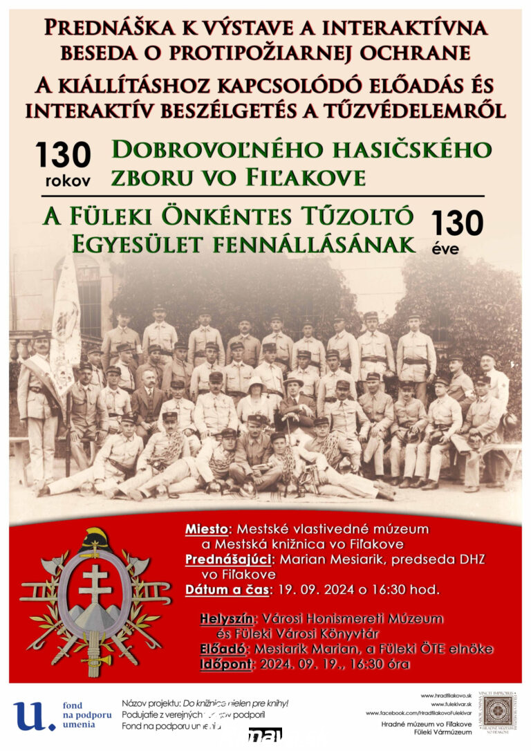 Hradné múzeum Vás pozýva na prednášky, tematicky viažuce sa k výstave 130 rokov Dobrovoľného hasičského zboru vo Fiľakove, ktoré sa uskutočnia v rámci série podujatí Do knižnice nielen pre knihy! Dňa 19. 9. 2024 v[...]
