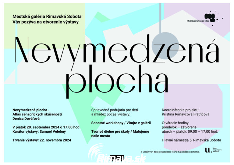 POPIS UDALOSTI, POZNÁMKY Denisa Dovaľová (Ne)vymedzená plocha. „Atlas senzorických skúseností“ kurátor výstavy: Samuel Velebný vernisáž: v piatok 20. septembra 2024 o 17.00 hod. grafický dizajn: Martina Masaryková koordinátorka výstav: Kristína Rimavcová Fratričová trvanie výstavy: do[...]