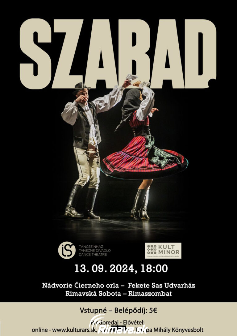 V piatok 13. septembra 2024 o 18:00 hod. sa na nádvorí Čierneho orla v Rimavskej Sobote predstaví Tanečné divadlo Mladé srdcia s programom „Slobodný". Vstupenky na predstavenie v hodnote 5€ si záujemcovia môžu zakúpiť v Kníhkupectve Mihálya Tompu a[...]