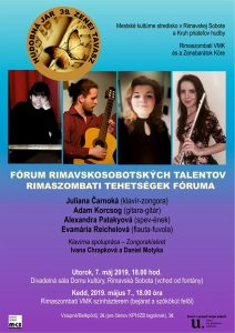 Pozývame Vás v utorok, 7. 5. 2019 o 18.00 hod. do divadelnej sály DK (vchod od fontány) na ďalší koncert v rámci 39. ročníka Hudobnej jari Fórum rimavskosobotských talentov. V programe budú účinkovať mladí umelci,[...]
