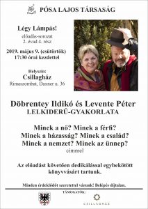 Döbrentey Ildikó és Levente Péter lelkiderű-gyakorlata Minek a nő? Minek a férfi? Minek a házasság? Minek a család? Minek a nemzet? Minek az ünnep? címmel Az előadást követően dedikálással egybekötött könyvvásárt tartunk.