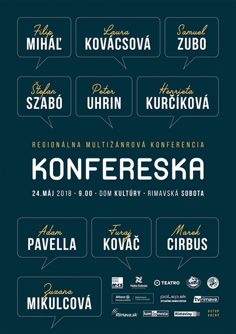 Regionálna multižánrová konferencia, ktorá inšpiruje, motivuje a vyzýva mladých ľudí k zamysleniu sa. Nad sebou, svojimi cieľmi, záujmami a hodnotami, nad priestorom, v ktorom žijú, ale aj nad aktuálnymi spoločenskými problémami. Prostredníctvom neformálnych prednášok 10[...]