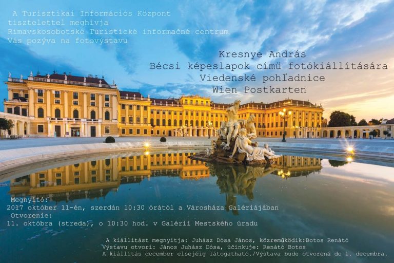 Turistické informačné centrum v Rim. Sobote Vás pozýva 11. októbra o 10:30 hod. do Galérie Mestského úradu na Hlavnom námestí na otvorenie fotovýstavy pod názvom Viedenské pohľadnice. Autorom fotografií je mladý fotograf András Kresnye. Výstavu[...]
