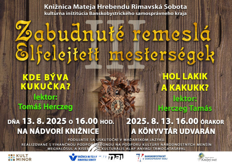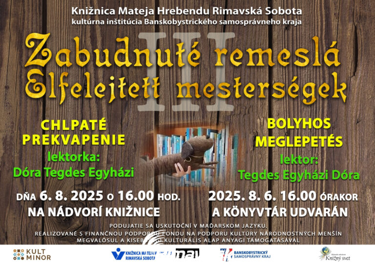 V rámci projektu Zabudnuté remeslá 3 sa realizuje séria prednášok spojených s tvorivými dielňami, ktoré deťom, rodičom a starým rodičom poskytnú jedinečnú možnosť objaviť históriu a techniky starých remesiel. Prostredníctvom prednášky sa účastníci dozvedia, ako[...]