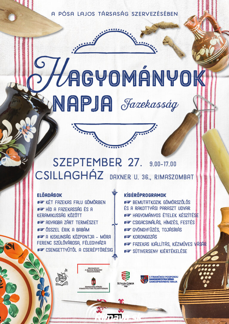 A Pósa Lajos Társaság tisztelettel hívja Önt Hagyományok napja Fő téma: Fazekasság Időpont: 2025. szeptember 27., 9:00 óra Helyszín: Csillagház, Daxnerova 36, Rimaszombat Program: 9:00 – 9:30 Érkezés, Regisztráció 9:30 – 9:35 Pósa Judit, a[...]