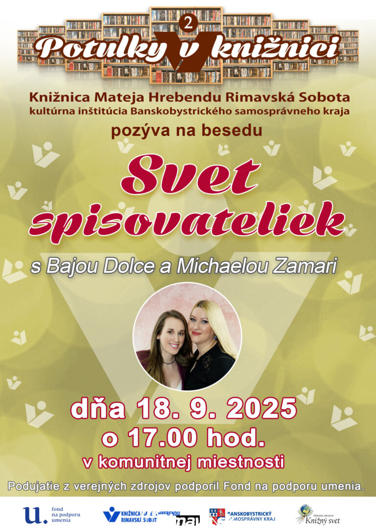 Príďte si vypočuť zaujímavé príbehy zo zákulisia tvorby známych autoriek, dozvedieť sa viac o ich inšpiráciách a umeleckej ceste. Baja Dolce je známa svojimi romantickými zbierkami a hlbokým pohľadom na svet, zatiaľ čo Michaela Zamari[...]