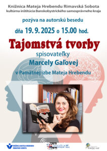 Autorská beseda so slovenskou autorkou Marcelou Gaľovou, ktorá sa podelí o svoj pohľad na svet literatúry, tvorivý proces a cestu od nápadu k napísaniu knihy. Počas besedy sa účastníci dozvedia, aké sú zdroje jej inšpirácie,[...]