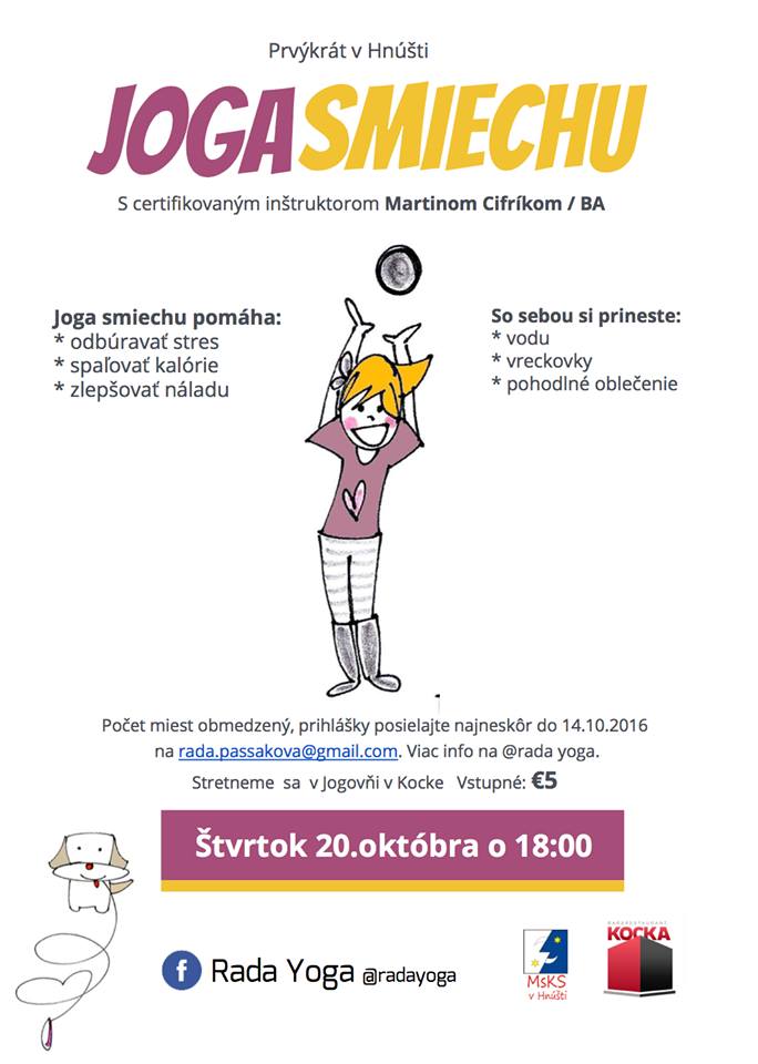 Joga Smichu je kombinácia cvičeníi, ktoré vedú k spontánnemu smiechu. Pracuje sa v skupine formou hry . Joga Smiechu uvoľnuje napätie v tele, posiľňuje brušné svaly a prináša novú radosť do života. Terapia smiechu.