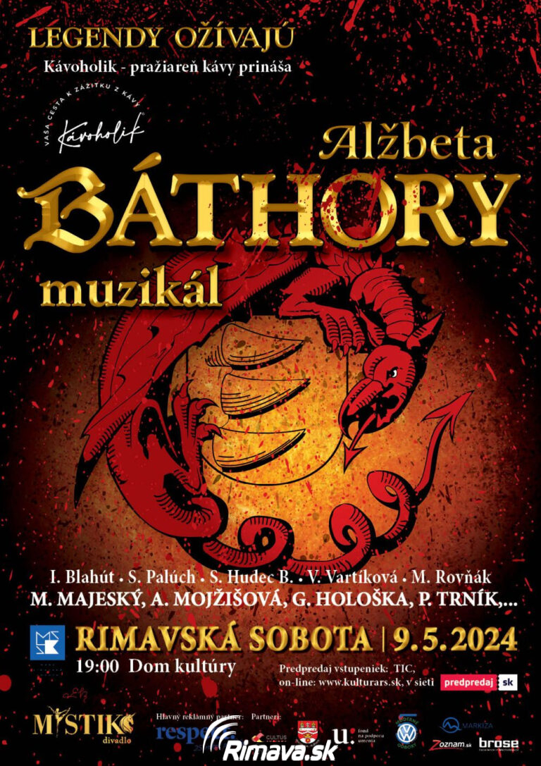 Legenda sa vracia! Príbeh krvavej grófky, ktorá sa stala legendou už 9.5. o 18.00 hod. v Rimavskej Sobote! Muzikál s hviezdnym hereckým obsadením, príbeh o nenaplnených túžbach v srdci Alžbety Báthory, v ktorej prebudia draka.[...]