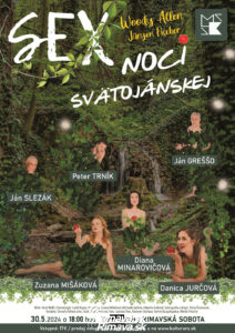 Dynamická, trošku rozmarná, no pritom intelektuálna komédia z pera Woodyho Allena Sex noci svätojánskej zavíta do Rimavskej Soboty vo štvrtok, 30. 5. 2024 o 18.00 hod. Dej sa odohráva v roku 1905. Intelektuál Andrew Hobbs[...]