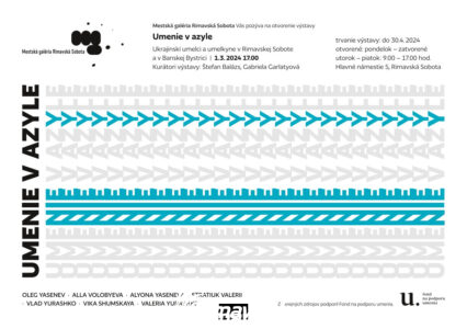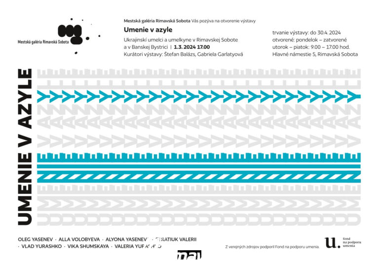 Mestská galéria Rimavská Sobota Vás pozýva v piatok, 1. marca 2024 o 17.00 hod. na vernisáž výstavy Umenie v azyle, Ukrajinskí umelci a umelkyne v Rimavskej Sobote a v Banskej Bystrici. Vystavujúci umelci: Oleg Yasenev,[...]