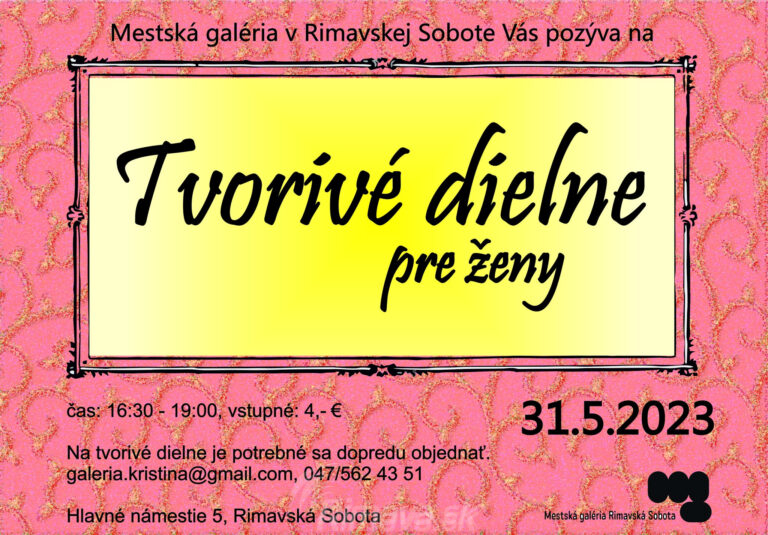 Milé ženy, v stredu 31. 5. 2023 v čase od 16.30 do 19.00 pokračujeme ďalšou Tvorivou dielňou pre ženy V Mestskej galérii. Tentokrát sa budeme venovať populárnej technike „makramé". Vytvoríme si závesnú dekoráciu z prírodných[...]
