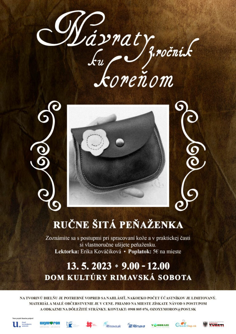 V sobotu, 13. 5. ponúkame druhé z ôsmych tvorivých stretnutí v rámci 3. ročníka projektu Návraty ku koreňom. V čase od 9.00 – 12.00 hod. sa v priestoroch DK v Rimavskej Sobote účastníci zoznámia s[...]
