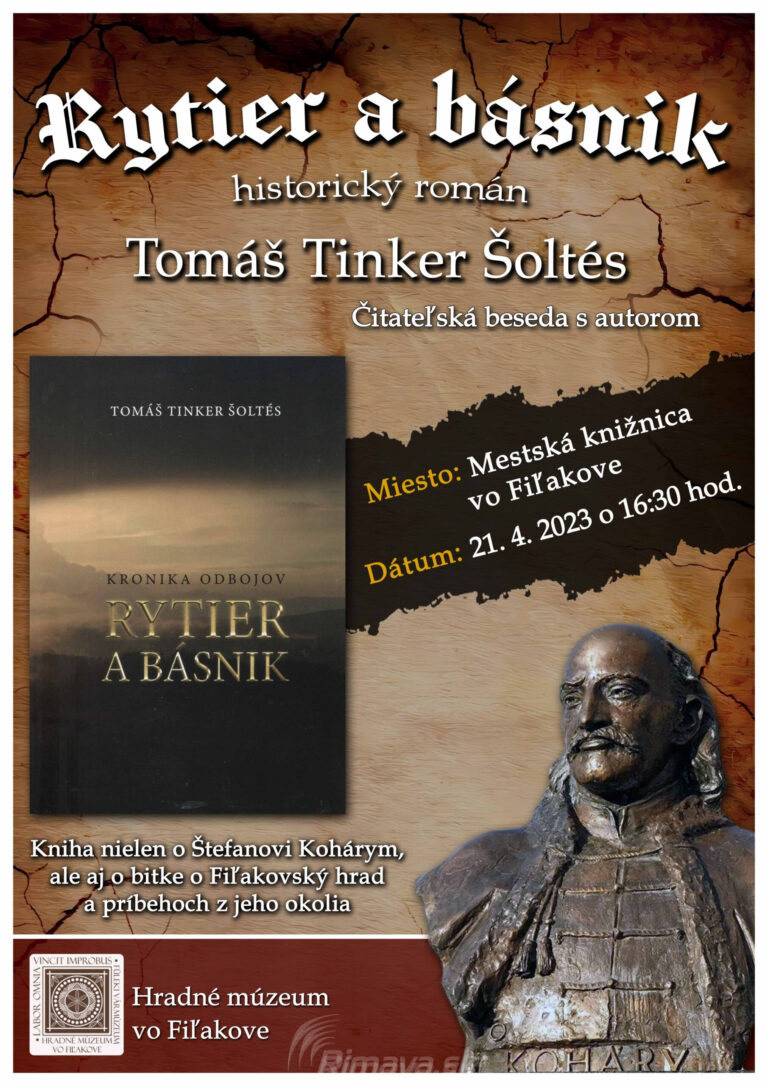 Hradné múzeum vo Fiľakove pozýva všetkých záujemcov na čitateľskú besedu, ktorá sa uskutoční 21. 4. 2023, o 16.30 hodine. Tentokrát zavíta do Mestskej knižnice Tomáš Tinker Šoltés, ktorý predstaví svoj historický román s názvom Rytier[...]