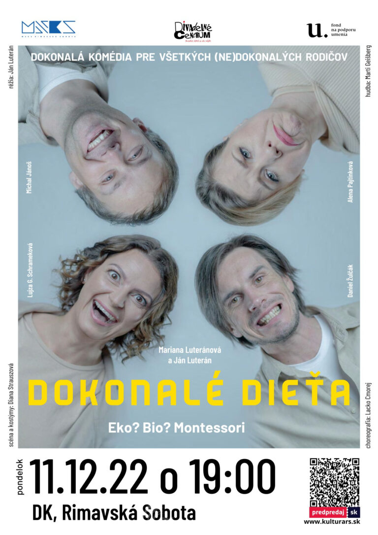Eko? Bio? Montessori? Divadelné centrum prináša 11. 12. 2022 o 19.00 hod. do Rimavskej Soboty vtipnú a úprimnú autorskú inscenáciu DOKONALÉ DIEŤA o rôznych prístupoch k rodičovstvu a výchove v podaní jedinečného hereckého obsadenia: herečka[...]