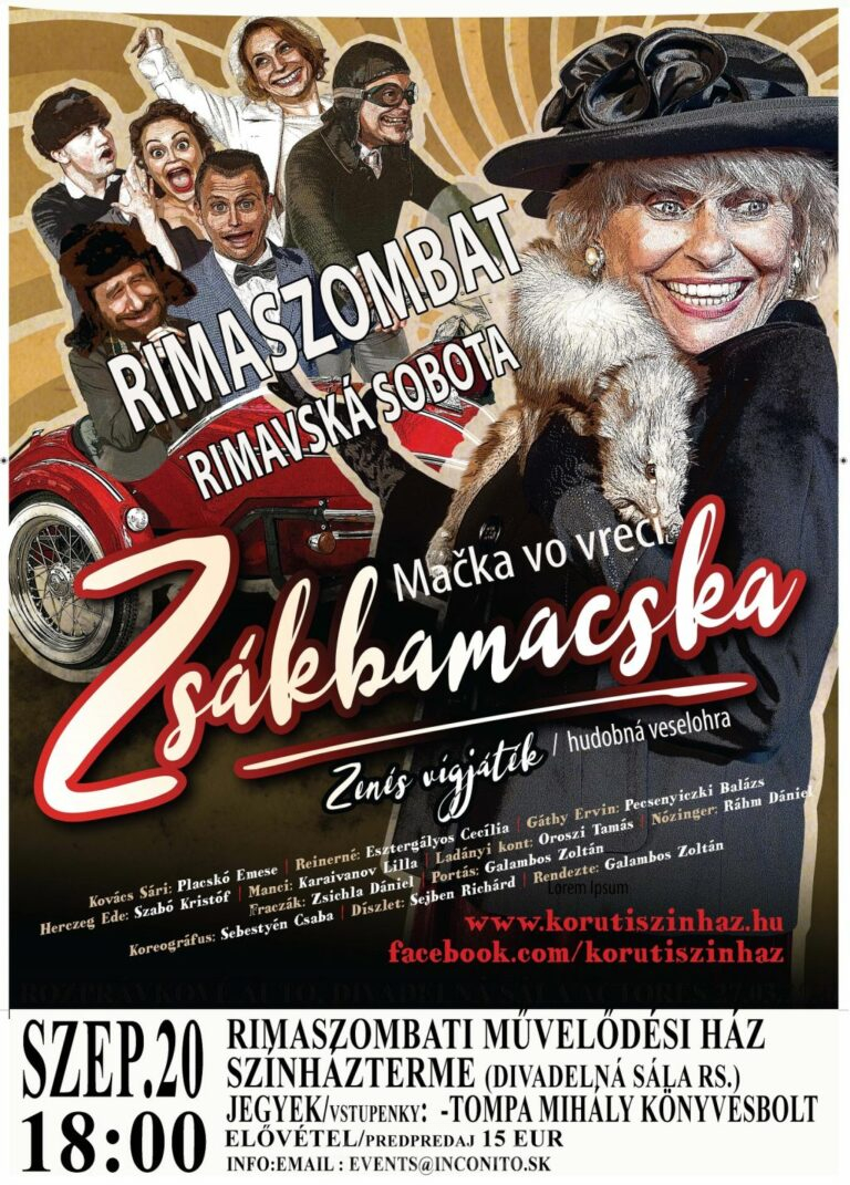 Najznámejšia maďarská herečka sa predstaví na doskách rimavskosobotského divadelného pódia. Budapeštianske divadlo Körúti vám v hlavnej úlohe predstaví Cecíliu Esztergályos v divadelnej veselohre Mačka vo vreci - Zsákbamacska. Veselohru si môžete prísť pozrieť aj vy,[...]
